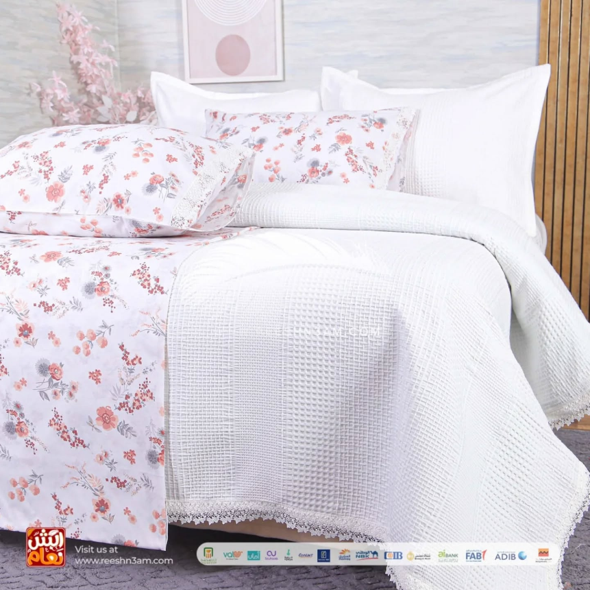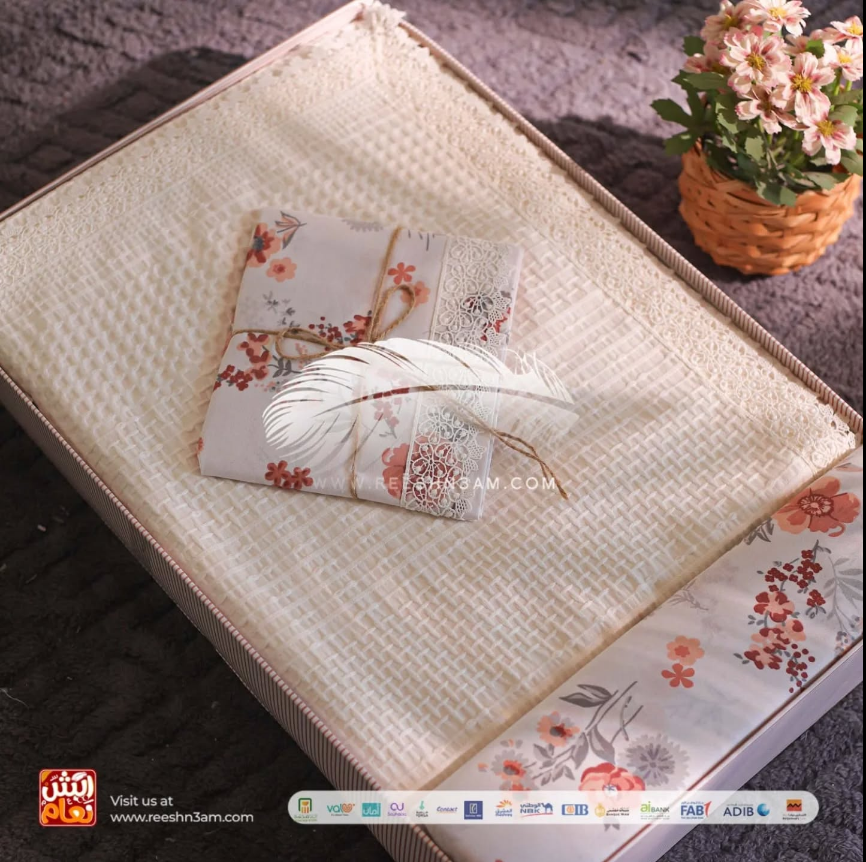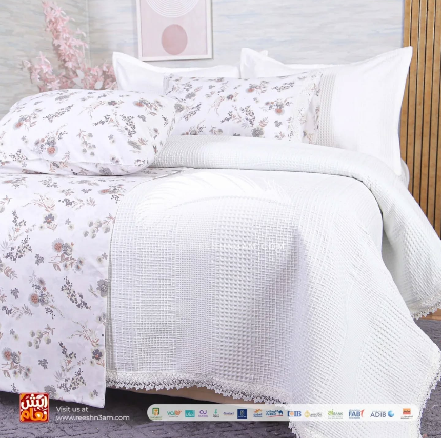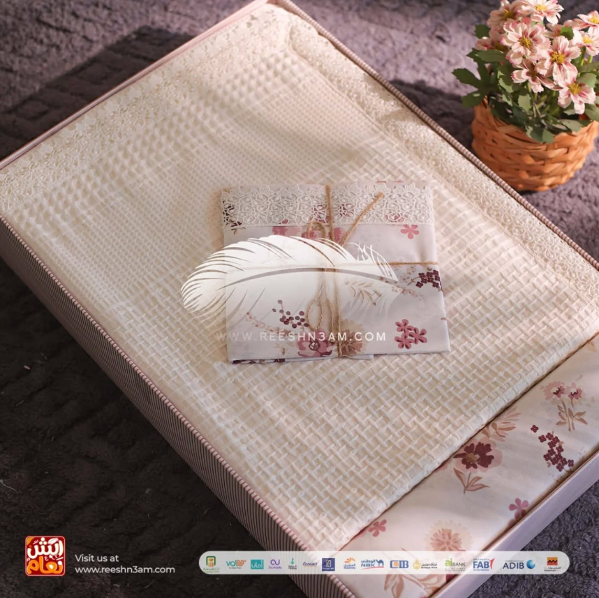 حيث تضيف تطريزات ريش النعام الطبيعي إحساسًا بالترف والرقي، ليصبح سريرك قطعة ديكور فنية قبل أن يكون مجرد مفروشات 🛏️